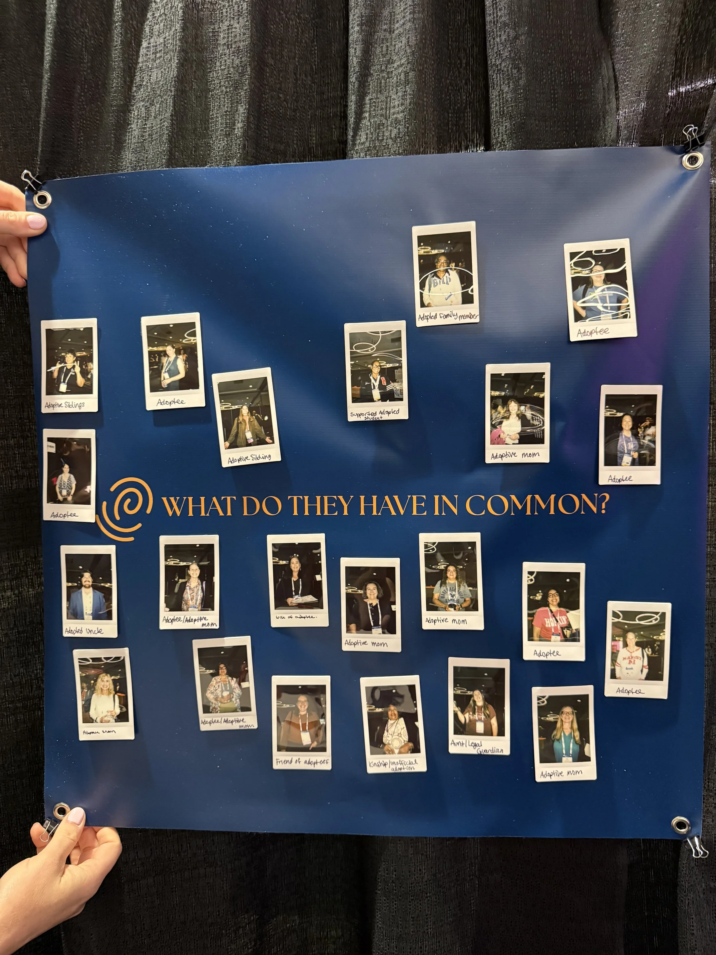 Of the 150 or so people we spoke to, nearly 90% had a personal connection to adoption—or were adoptees themselves. The resonance was immediate and powerful. To honor these connections, we invited attendees to take Polaroid photos for a live visual project—a growing wall of people connected to adoptees. On day two, folks returned just to see who had been added. It created a sense of community and visibility right there in the middle of the exhibit floor.